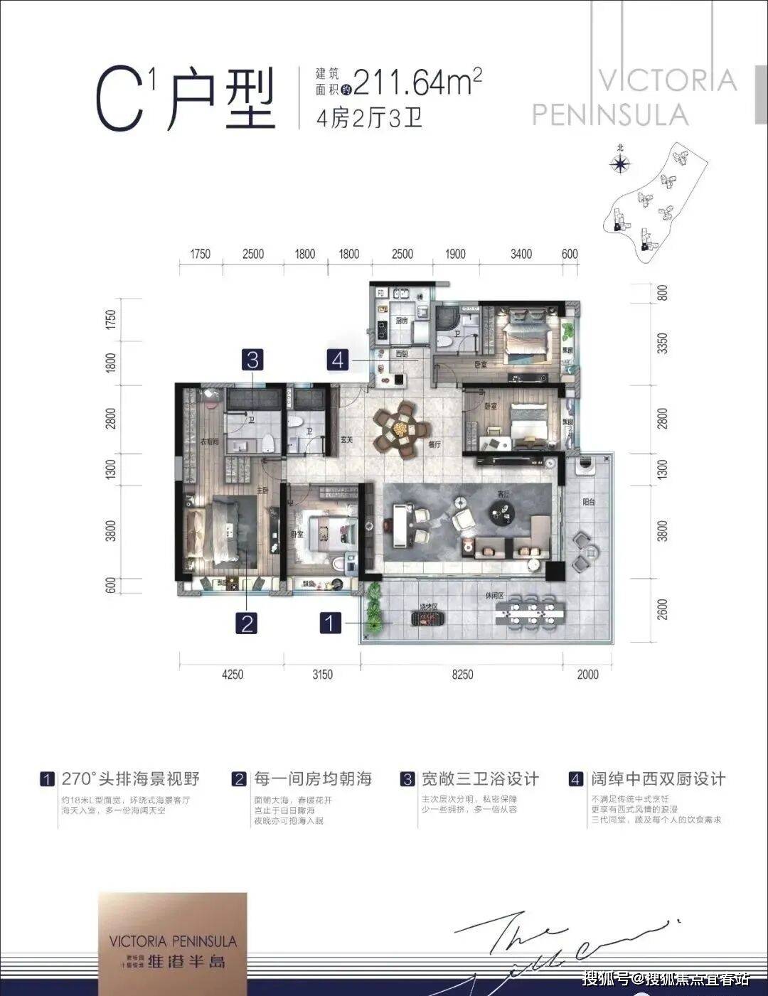 维港半岛正在售建面约101-211㎡的精拆大户型,约11.6㎡面宽三点一线。
